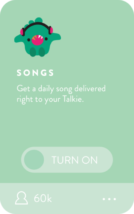 You can download over 20 applets to your Talkie using the Toymail app. This includes games, stories, and songs, downloaded right to your Talkie.